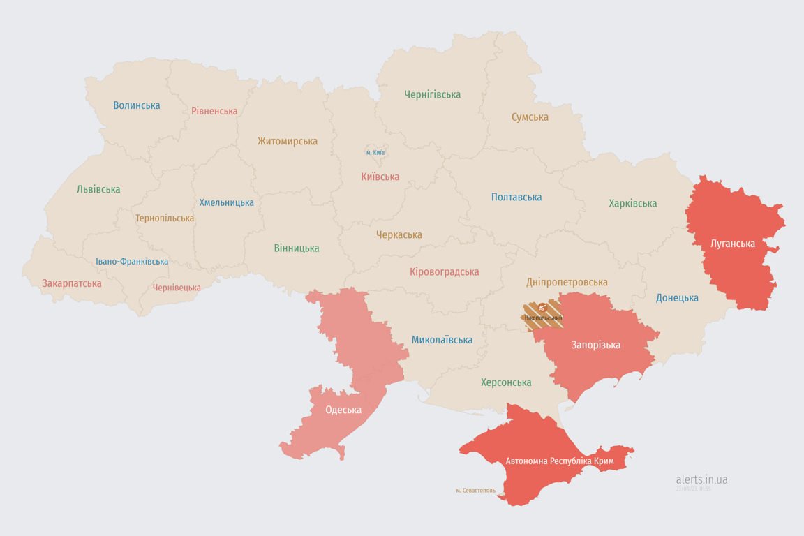 Оновлено 01:55. Повітряні сили попереджали про групу "Shahed" яка рухалася над акваторією Чорного моря у напрямку Одеси. На Одещині наразі зберігається повітряна тривога, яку оголошено також і в Запорізькій області та традиційно на Луганщині та в Криму.