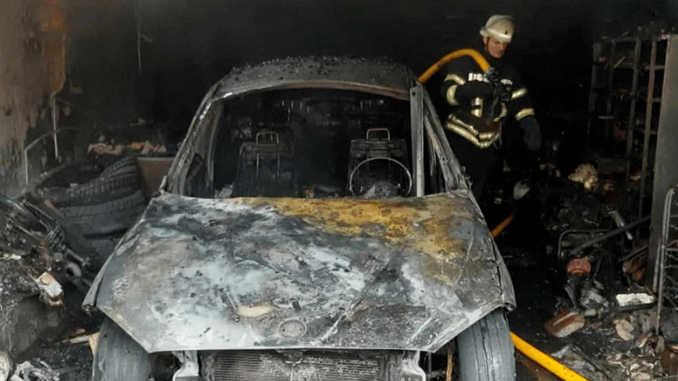 Внаслідок пожежі вогнем пошкоджено гараж та знищений легковий автомобіль у ньому. Зазначимо, що судячи зі стану авто на фото, воно навряд чи підлягає ремонту. Загиблих та постраждалих немає. Причина пожежі встановлюється.