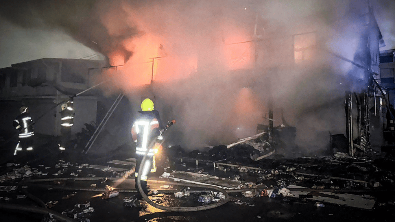 В Одеському районі спалахнула пожежа у торгівельному павільйоні з новорічними прикрасами. Вогонь швидко поширився та пошкодив ще кілька сусідніх об’єктів.