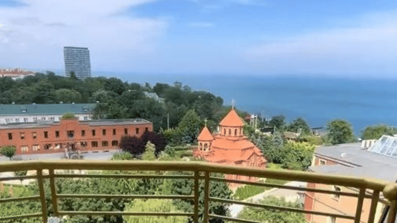 В соцмережах показали квартиру площею близько 150 квадратних метрів. У ній лише одна спальня, зате є два дивани, два санвузли, гардеробна й простора вітальня. Найбільше дивує тераса з видом на Чорне море та Вірменську церкву, яку автор назвав головною перевагою житла.