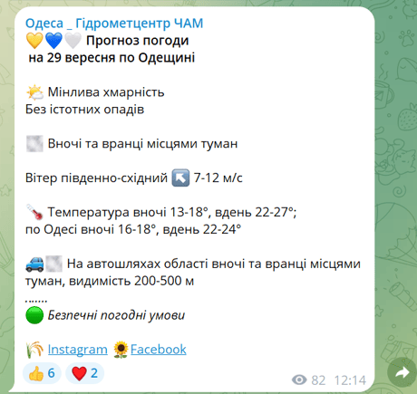 Погода в Одесі 29 вересня