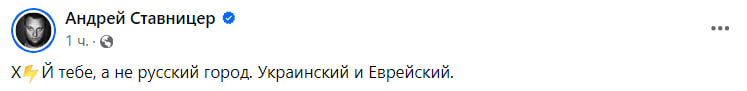 "Х*й тобі, а не російське місто. Українське і Єврейське", — наголосив він.