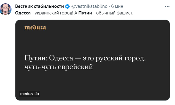Глава держави-терористки назвав Одесу російським містом, але трохи єврейським.