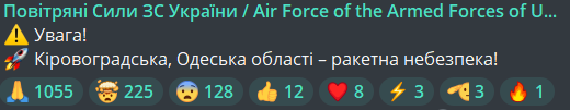 Ракетна небезпека в Одеській області, — Повітряні сили