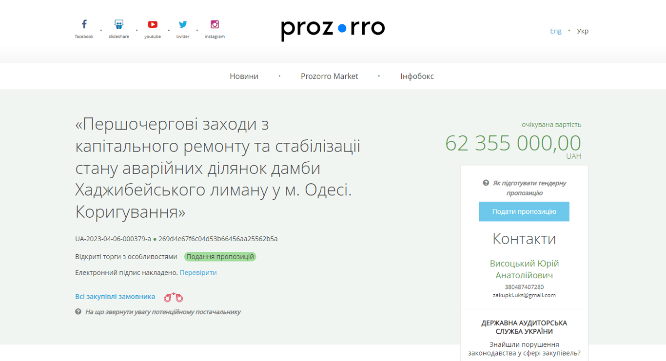 Про це Новини.LIVE дізнались з сайту державних закупівель Prozorro.