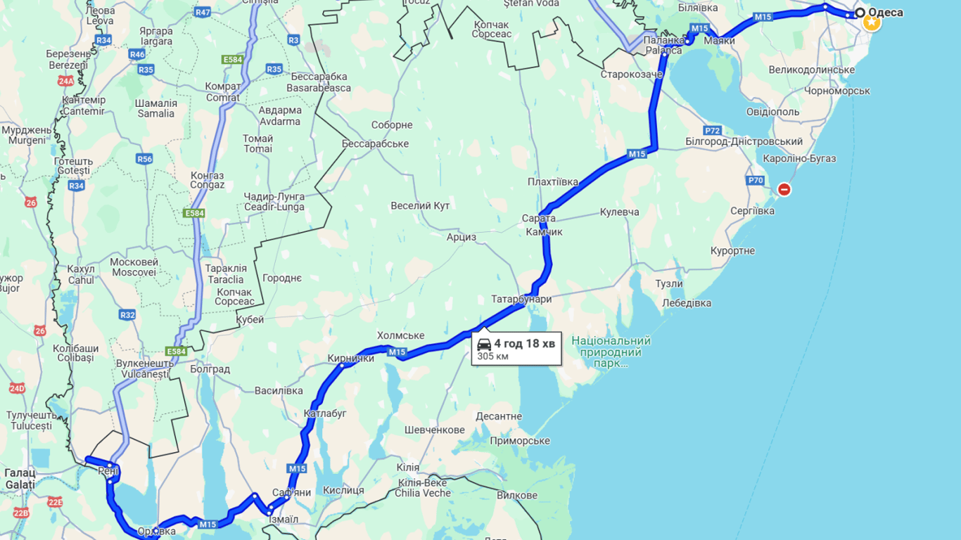 Чтобы добраться до Румынии, тоже придется постоять в пробках. Сейчас на международной трассе М-18 на юге Одесской области наблюдаются пробки возле села Броска, города Сараты и очереди на самом КПП "Орловка". Дорога до дунайской границы займет почти 5 часов.