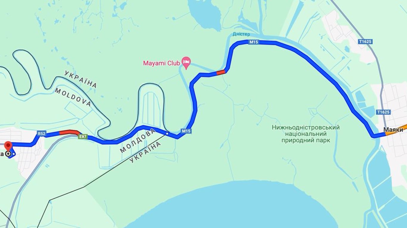 В сторону пункта пропуска "Паланка — Маяки — Удобное" есть пробки на выезде из Одессы, на КПП и в пределах природного парка. Дорога в Паланку сегодня составит 1 час 11 минут.