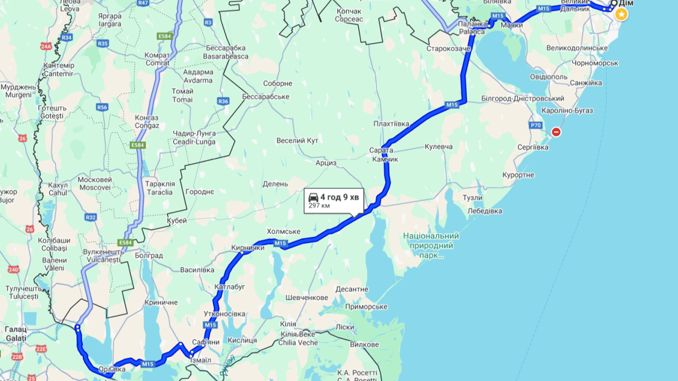 Наибольшее скопление авто — перед пунктом пропуска в Паланке. Там очередь протянулась почти на километр, а участок дороги проходит через Нижнеднестровский национальный природный парк. На картах он обозначен красным цветом, что указывает на затрудненное движение.