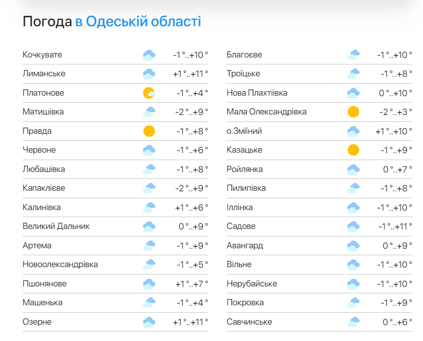 Прогноз погоды в Одесской области