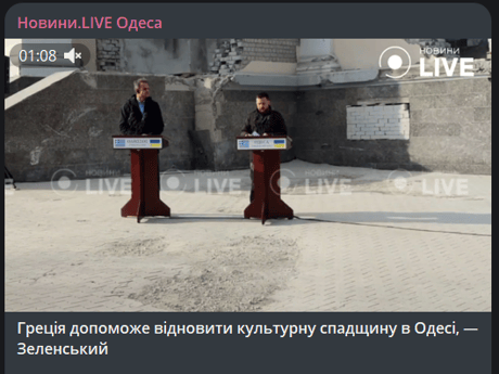 "Я хочу поблагодарить сегодня Грецию за готовность принять участие в восстановлении нашего культурного наследия в Одессе, которое имеет тесную связь с греческим наследием. Нельзя позволить путинской ненависти уничтожить все это — нашу Одессу, нашу страну, нашу Европу", — сообщил президент.