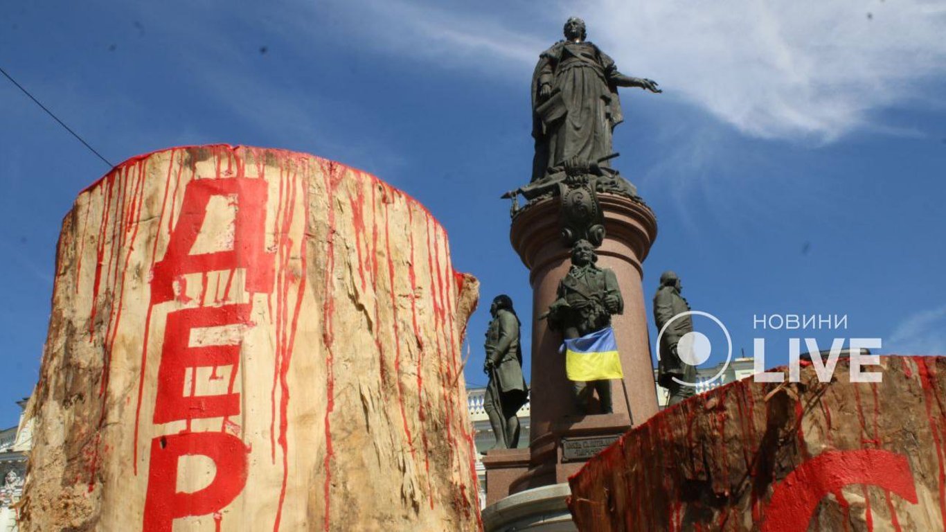 В Одессе активисты принесли к памятнику Екатерине II кровавый плащ: будут ли демонтировать памятник?