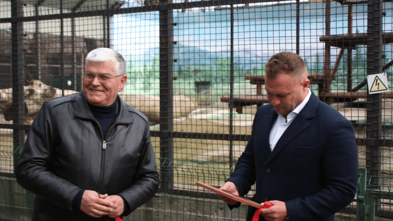 В зоопарке Одессы торжественно открыли игровую площадку для медведей. Теперь у воспитанников есть место, где они могут играть и отдыхать в теневой площади.