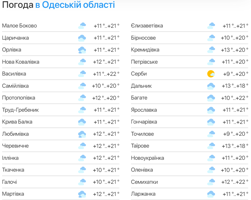 - Температура ночью 7-12°, днем 18-23°, местами до 26°.