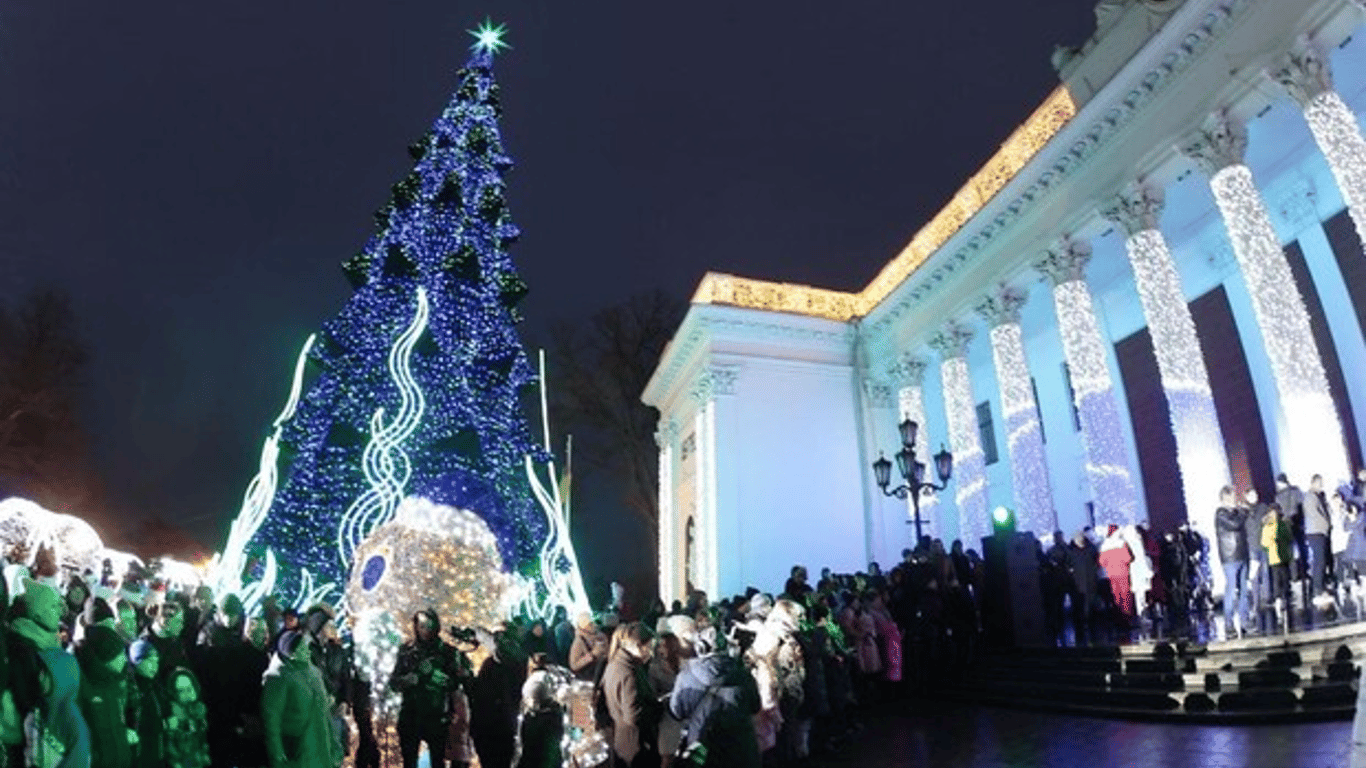 На Думской площади у горсовета зажгли главную новогоднюю елку Одессы. Фото