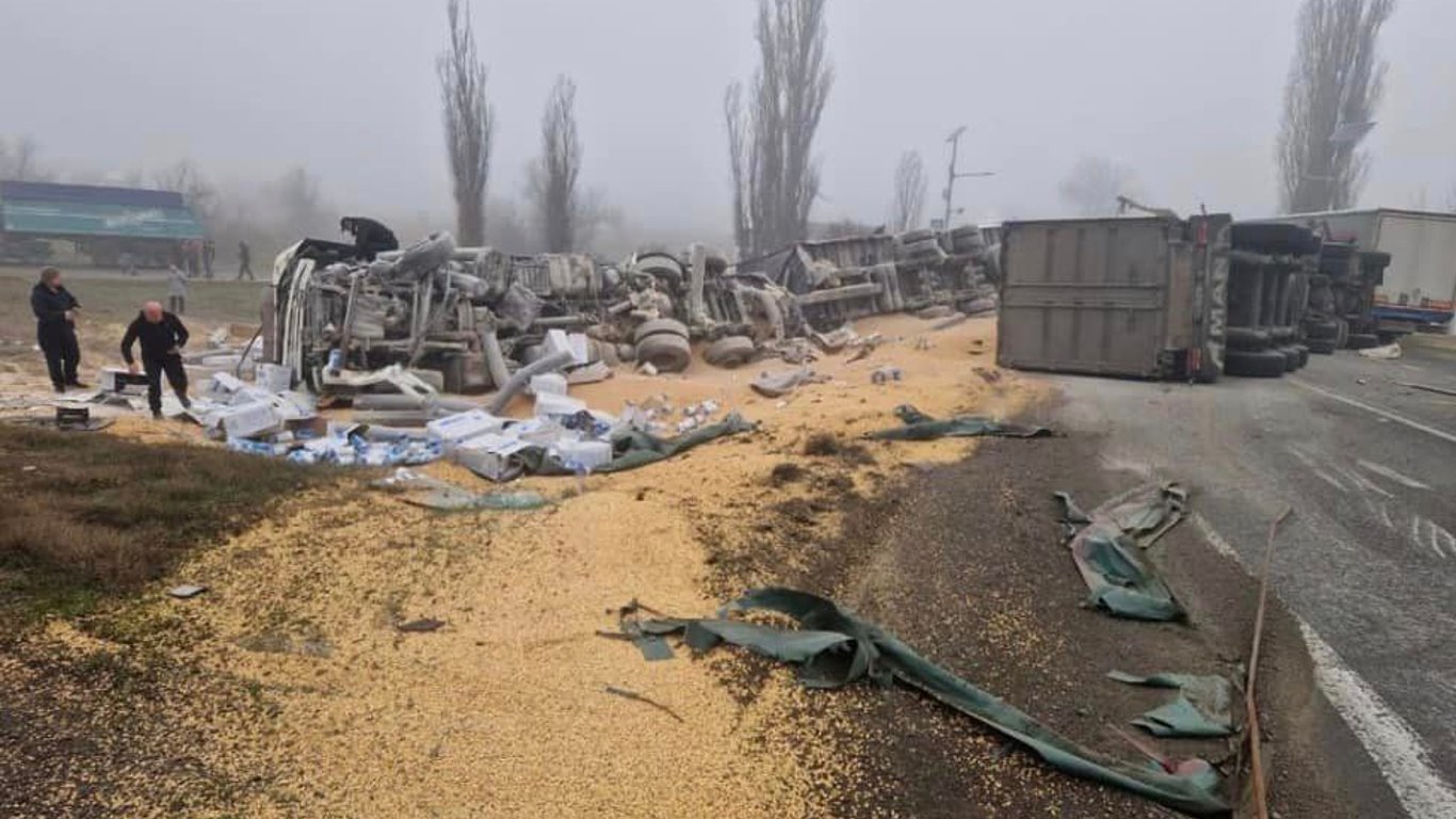 Первое ДТП произошло на 180 км возле села Холмское, где водитель грузовика потерял контроль над транспортным средством и перевернулся. Второе ДТП произошло на 210 км вблизи села Суворово, где произошло столкновение двух большегрузных средств.