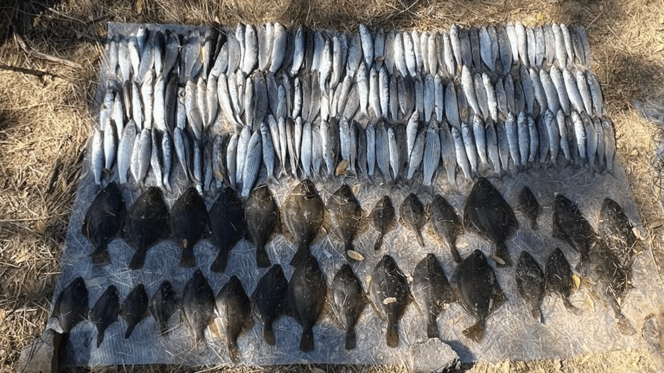 Документов на вылов у него не было. Зато правоохранители нашли у него лесковую сетку длиной 50 метров, забродный костюм и 186 единиц рыбы. Среди незаконного улова — кефаль остронос и камбала глосса.
