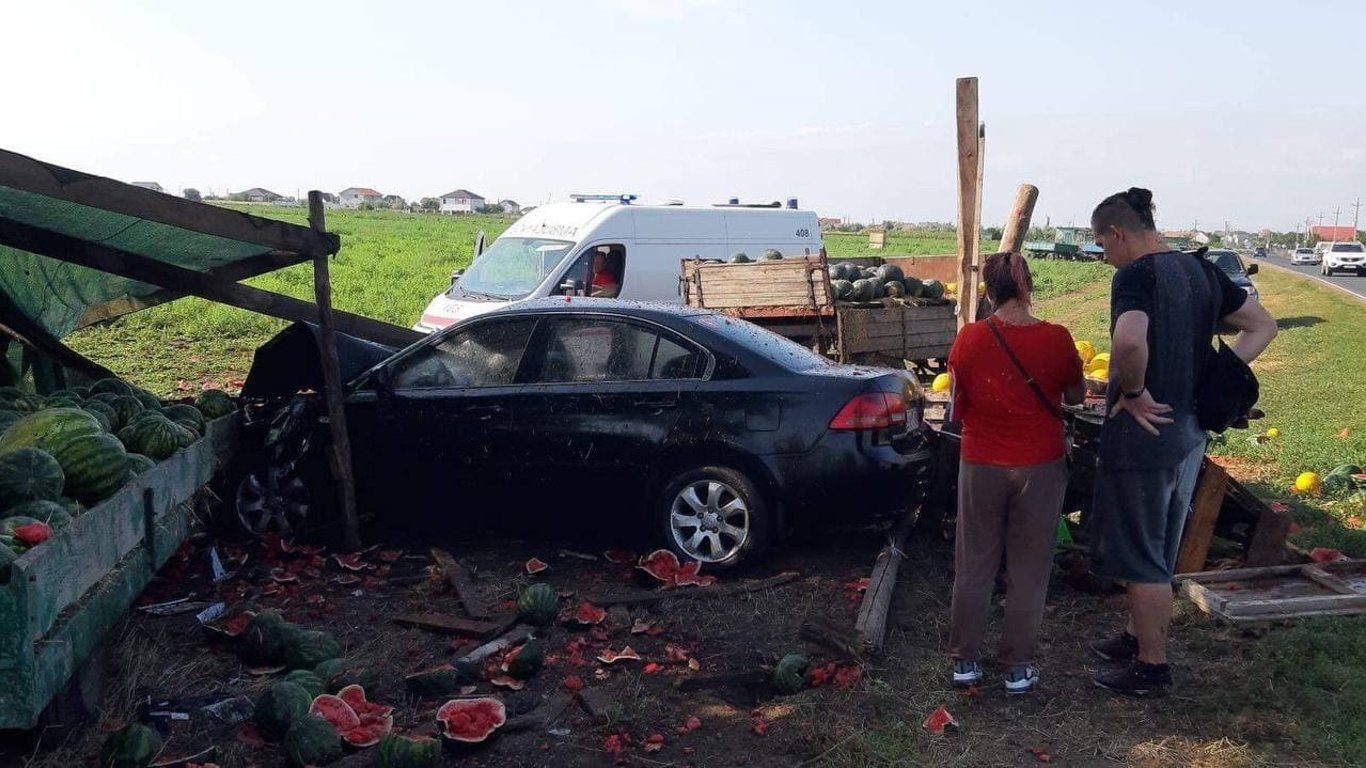 На трассе Одесса-Черноморск Kia влетела в палатку с арбузами: пострадал продавец