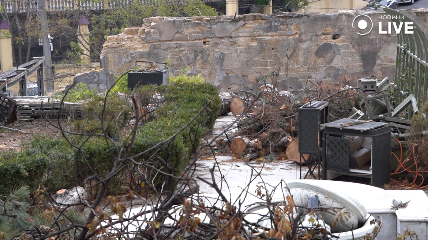 Больше всего разрушений в одесском Доме ученых получил летний дворик. Он является прилегающей территорией памятника архитектуры. Там разрушен старинный фонтан и клумбы. Также разрушения получило и само поместье графа Толстого.
