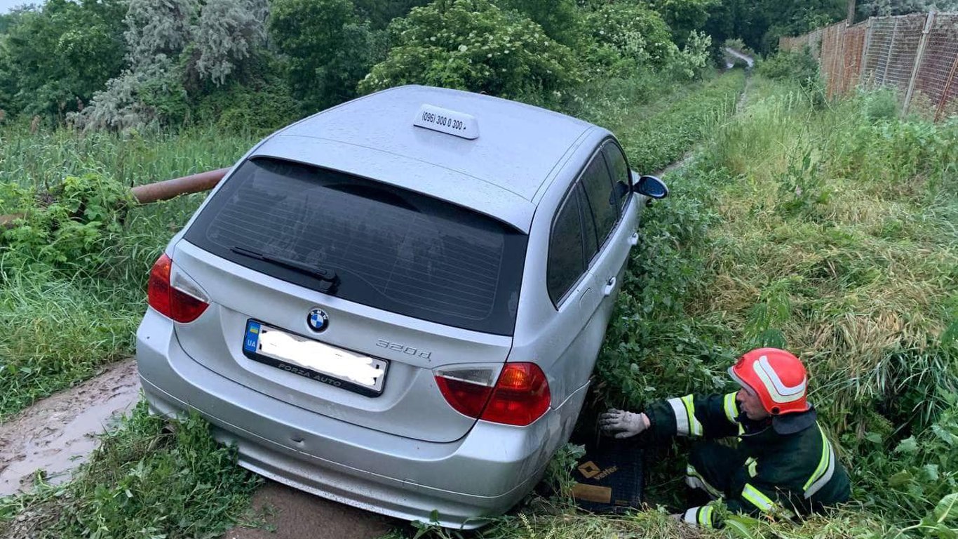 Не справился с управлением и застрял: в Одесской области спасатели вытащили машину из кювета