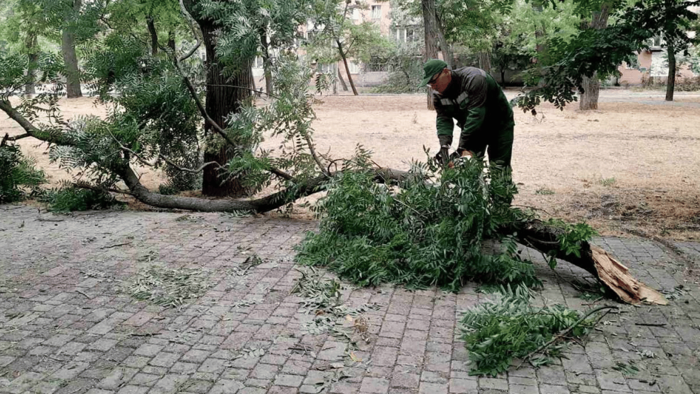 В первую очередь ликвидируют последствия там, где деревья перекрыли дороги, автомагистрали и пешеходные зоны. Также внимание уделяется проездам к социально важным объектам. Чрезвычайники и работники коммунальных структур работают во дворах, распиливают стволы и убирают мусор.