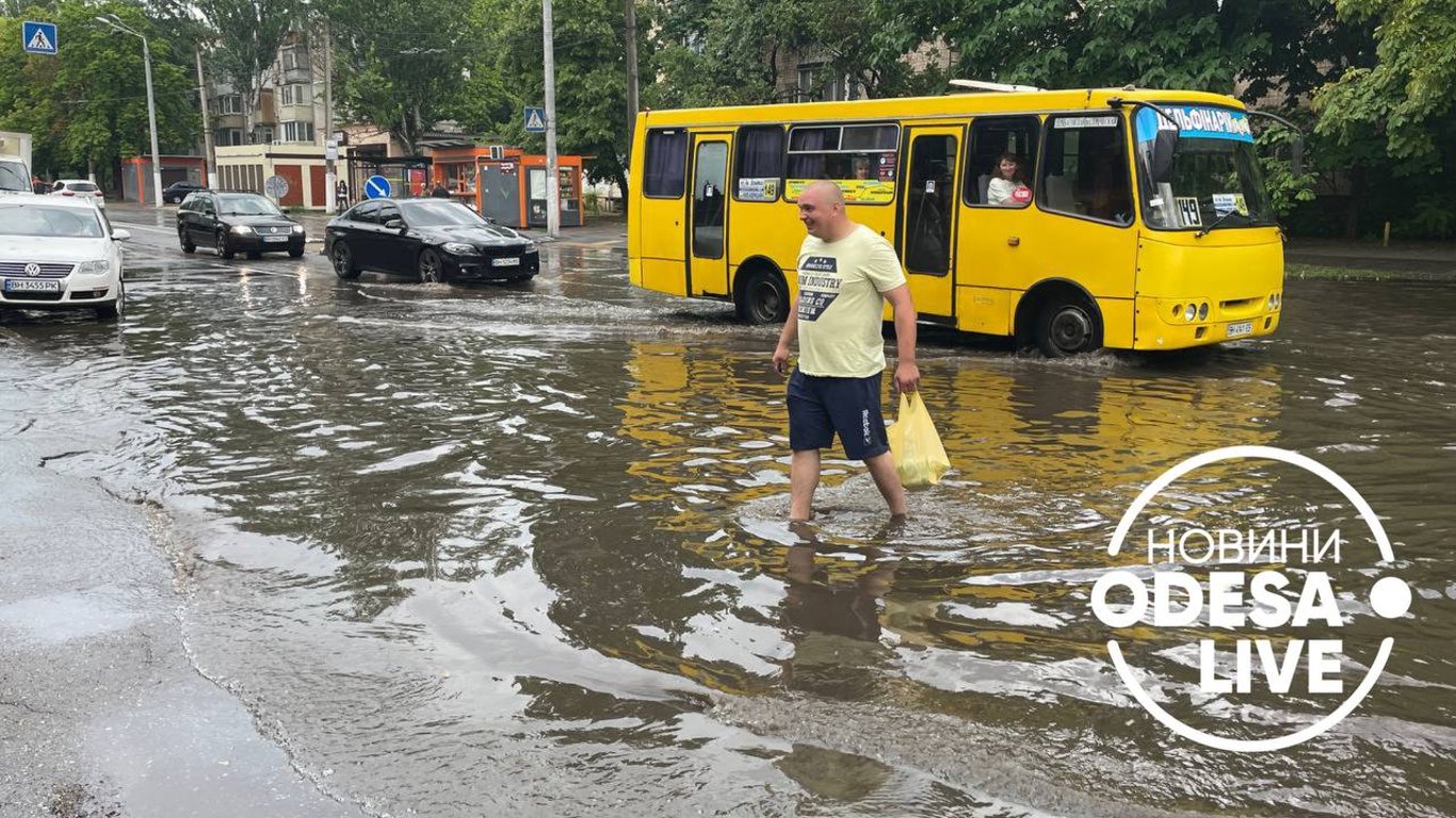 Менее чем через час дождя выпало 17 миллиметров осадков. По информации Гидрометеоцентра Черного и Азовского морей - это опасное метеоявление 1 уровня. Улицы города превратились в озера, общественный транспорт перестал функционировать, а Пересыпь снова остановилась в пробке.