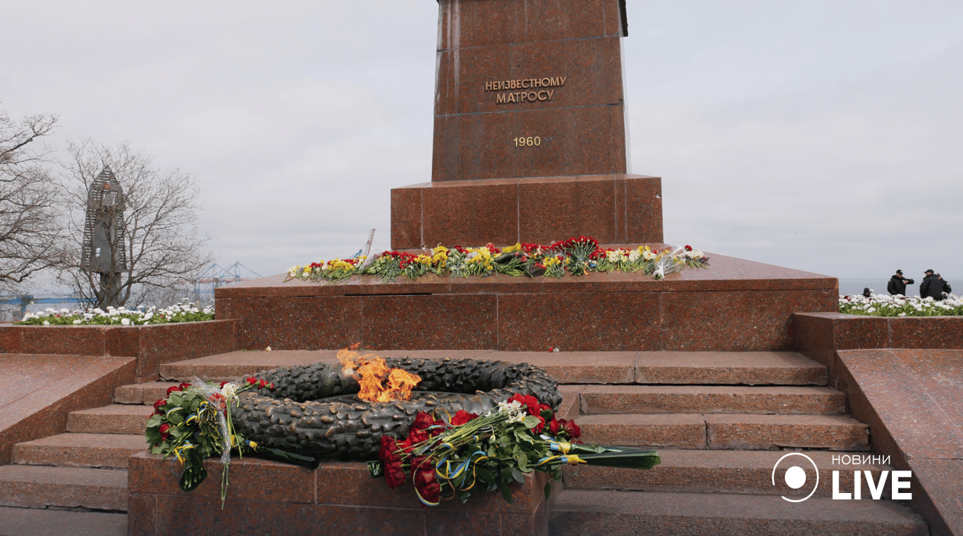 10 апреля традиционно состоялась церемония возложения цветов к памятнику Неизвестному матросу на Аллее Славы в парке им. Т. Г. Шевченко, а также к стеле "Крылья Победы" на площади 10 апреля.