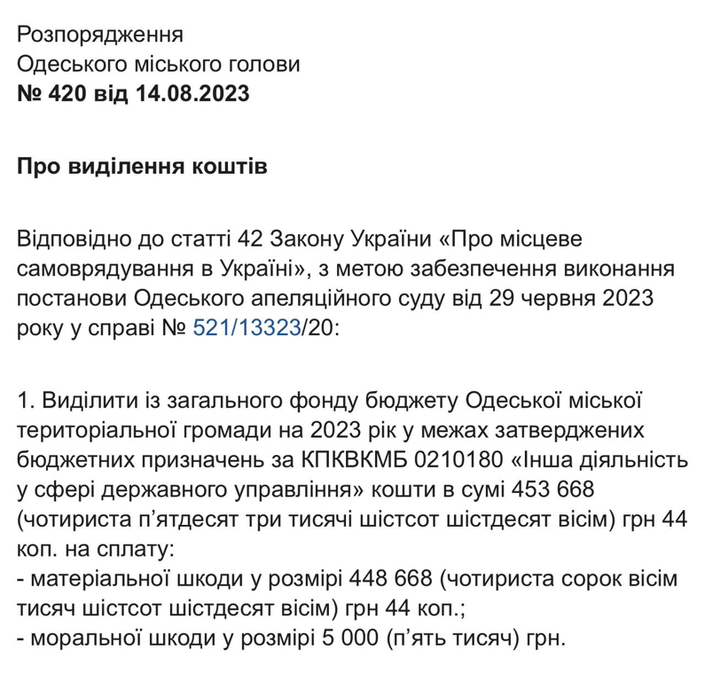 Об этом Новини.LIVE узнали из решения Одесского апелляционного суда.
