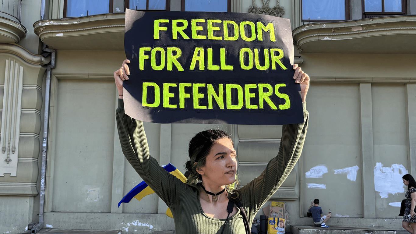 В субботу, 16 августа, на Дерибасовской улице десятки людей с плакатами и флагами собрались для того, чтобы отдать дань уважения и напомнить о военных и гражданских, которые пропали без вести или находятся в российском плену.