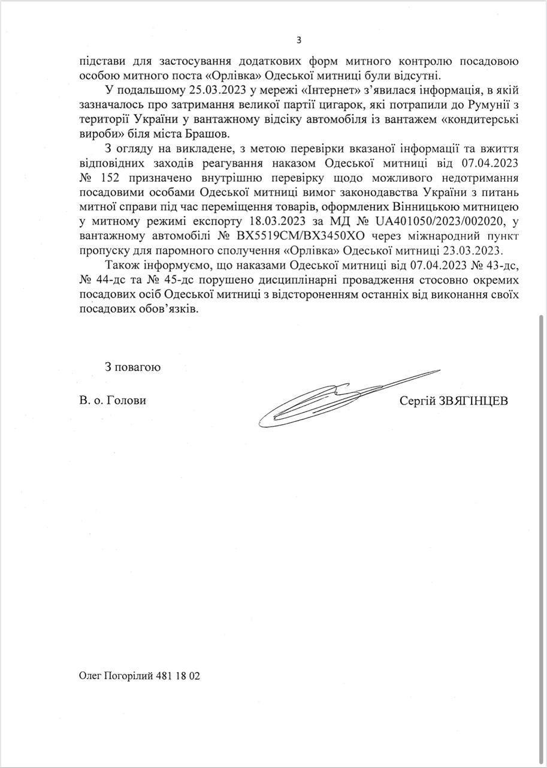 "По документам, в авто везли конфеты и вафли, дополнительные формы таможенного контроля применены не были. Впоследствии на территории Румынии этот же грузовик задержали с большой партией сигарет", — говорится в заявлении.