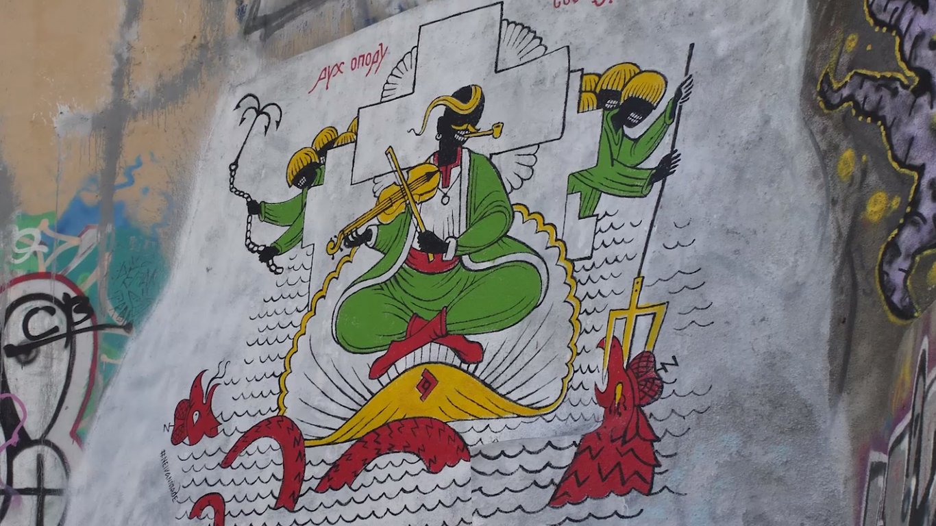 "Одесский Мамай" создается под Тещиным мостом по инициативе украинского художника Сергея Брилева. На рисунке изображен казак Мамай, собратья которого только что убили трезубцем российского Левиафана. Герой картины курит трубку и держит в руках скрипку, которая символизирует еврейскую общину, проживающую в нашем городе. Новый объект стрит-арта написал львовский мастер Михаил Скоп.
