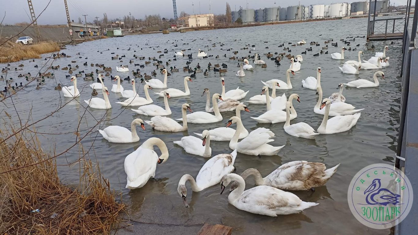 Сегодня, 24 января, работники Одесского зоопарка выпустили на свободу на черноморской переправе двух белых лебедей. Птицы были среди животных, которых волонтеры спасли из зоны боевых действий.