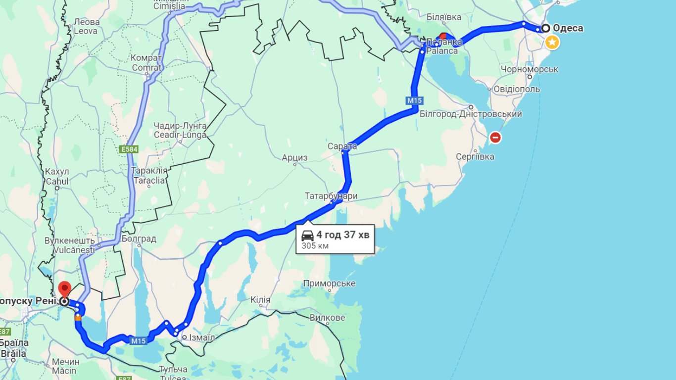 Сейчас в сторону Паланки есть пробка на въезде из Маяков и КПП, которая размещается в пределах Нижнеднестровского национального природного парка, там очередь достигает около трех километров. Этот участок на картах обозначен красным цветом. Перед самым пунктом небольшая очередь.