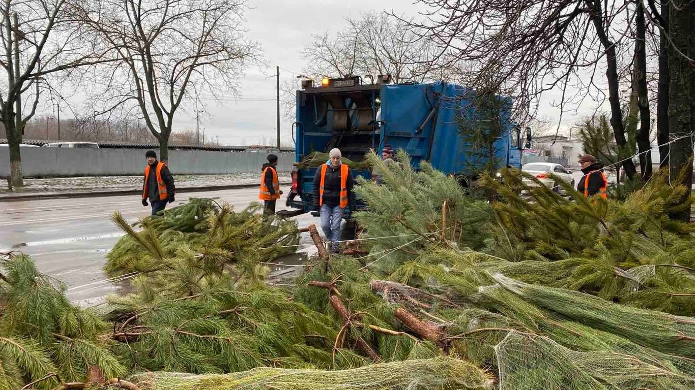 После Нового года одесские коммунальщики вывезли более 5 тысяч брошенных елок. Фото