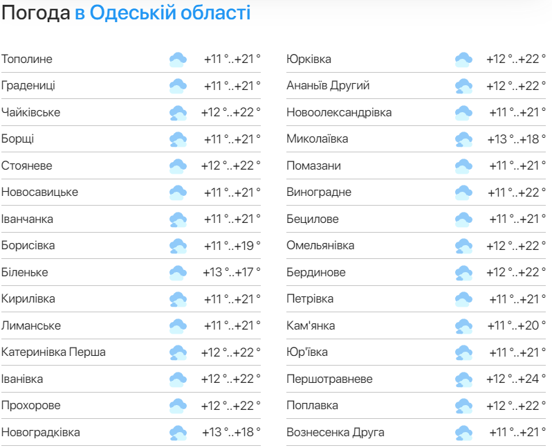 В течение дня синоптики прогнозируют в Одессе облачную погоду с прояснениями. Температура воздуха прогреется до +21°С.