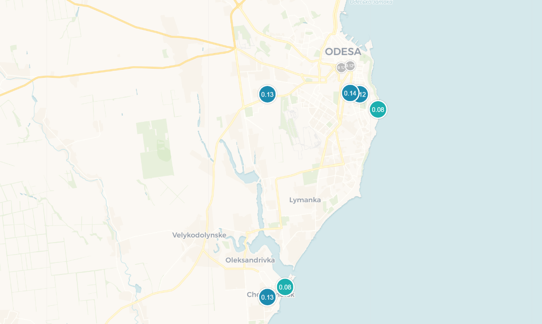 - г. Одесса показатели радиационного фона 0,08–0,14 мкЗв/час;