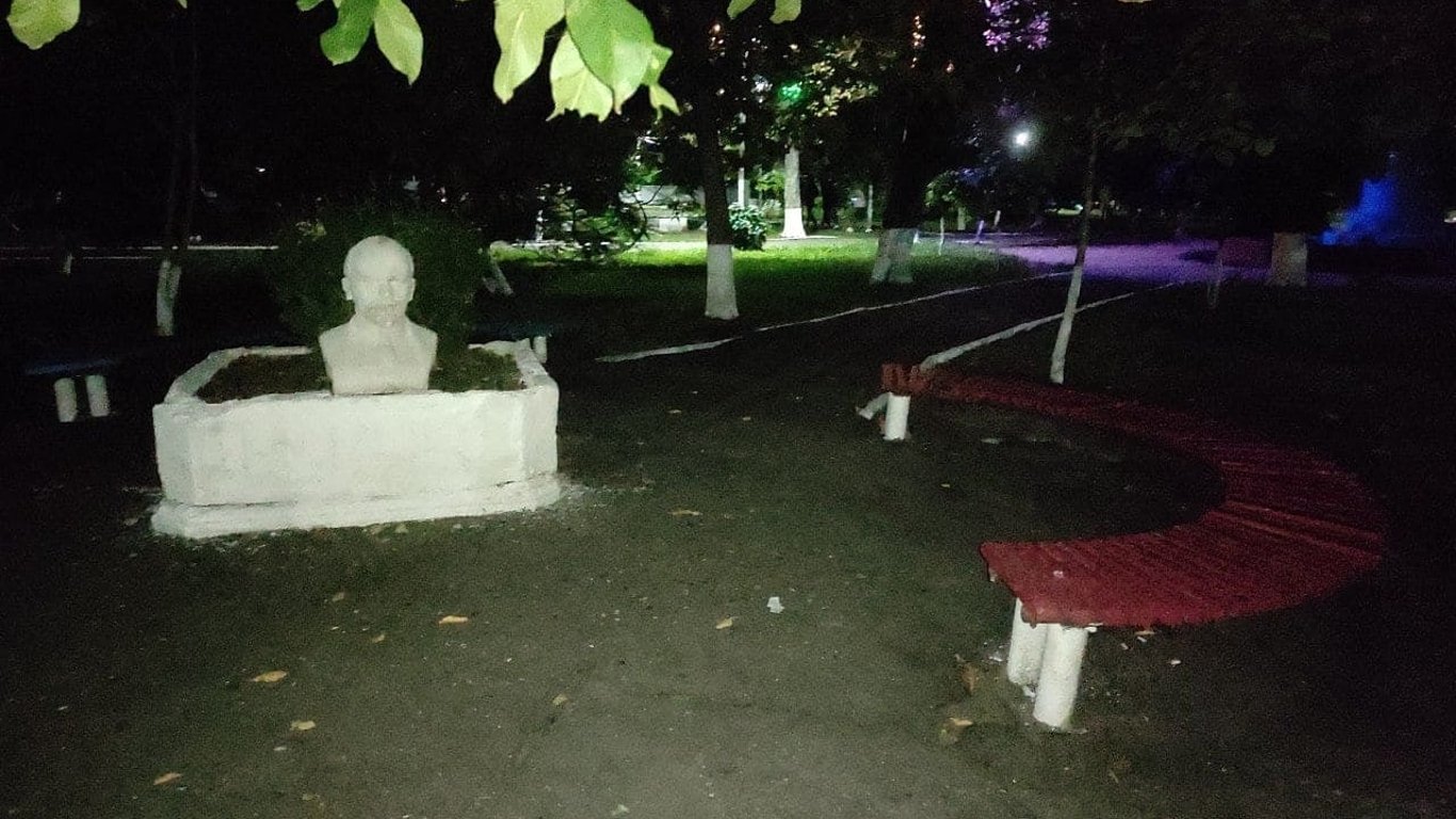 В Подольском Одесской области в парке установили бюст Ленину. Его разместили на цветнике.