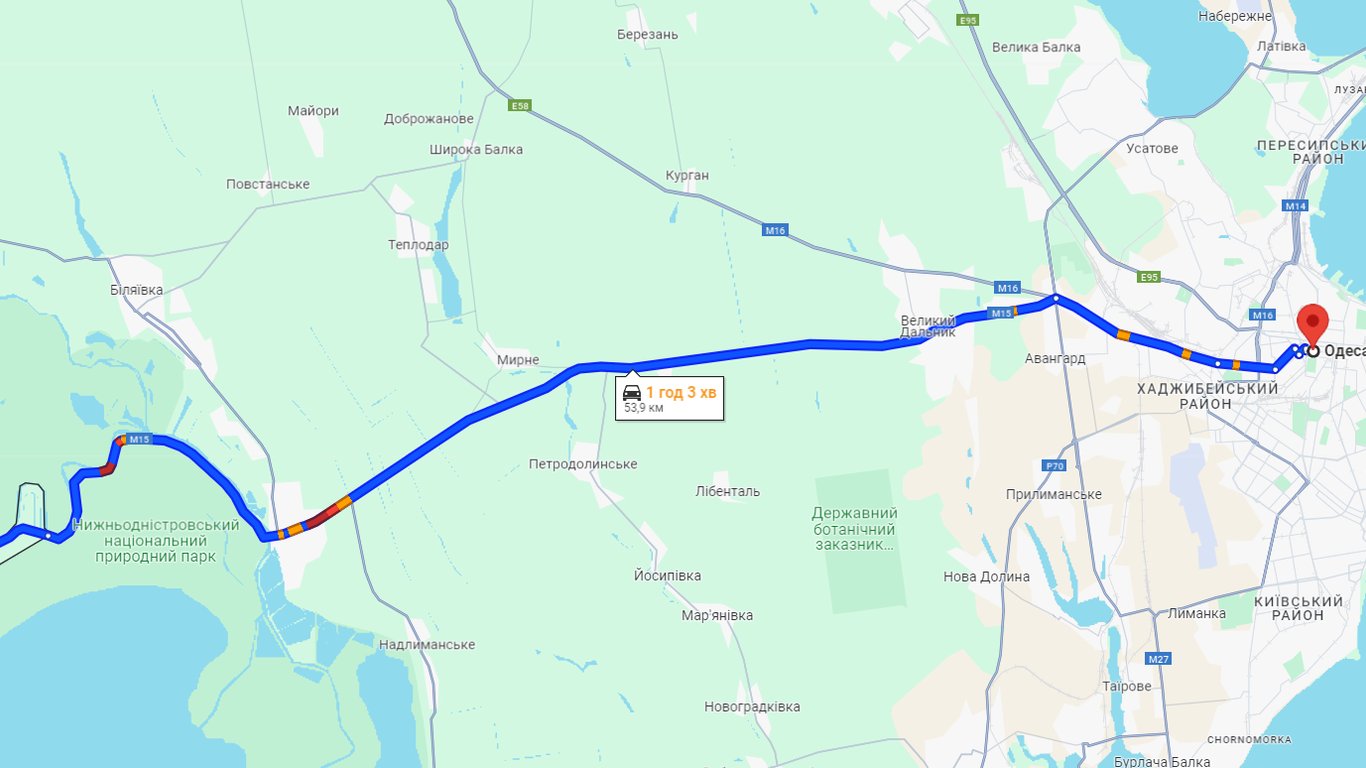В сторону Паланки есть небольшое скопление автотранспорта на выезде из Одессы. Также пробка наблюдается в пределах Маяков и перед КПП, расположенном в пределах Нижнеднестровского национального природного парка. Эти участки на картах обозначены красным цветом.