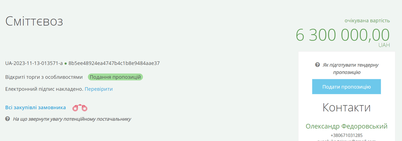 Мусоровоз для громады в Одесской области за 6 миллионов — на Prozorro появился новый тендер