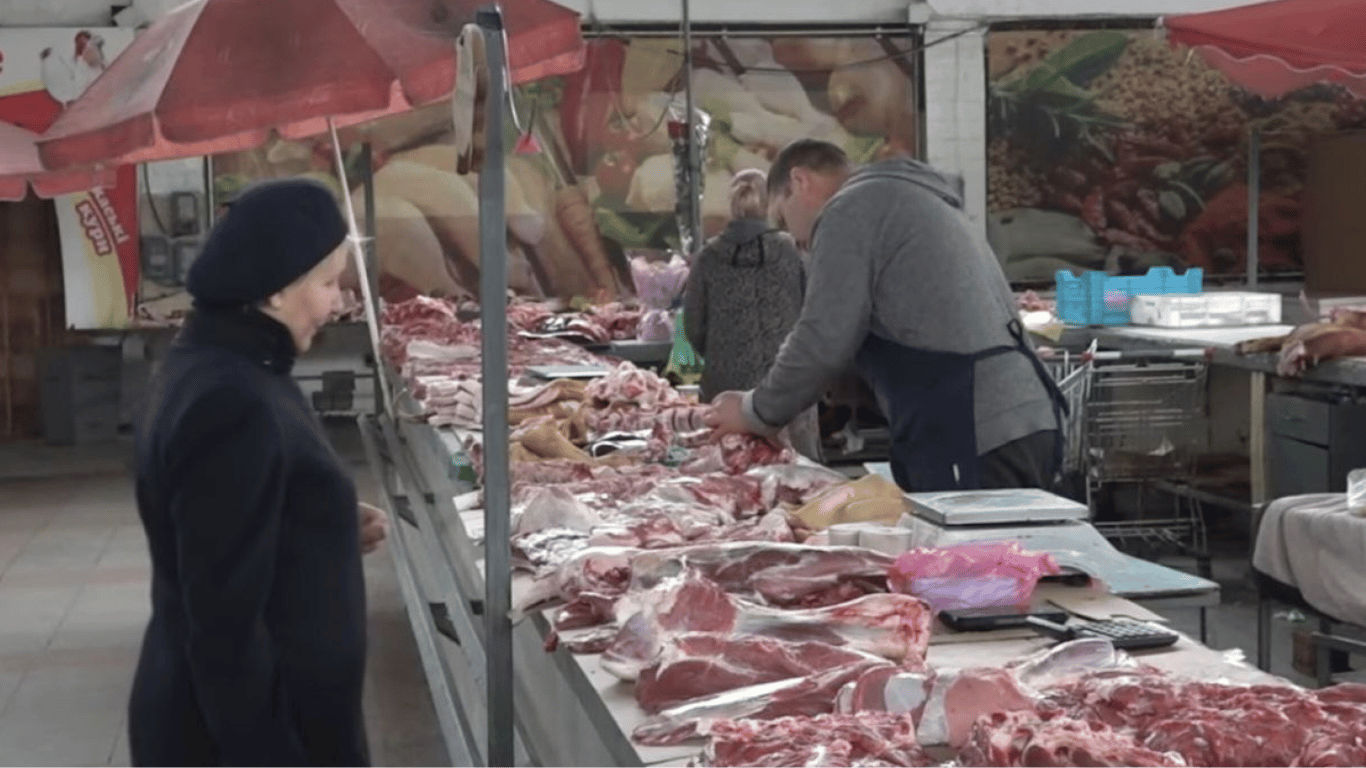 "Говядина держится, свинина немножко упала, а сало поднялось. Берут по-разному — кто больше, кто меньше. Но за свежим мясом всегда идут на базар", — рассказал продавец Иван.