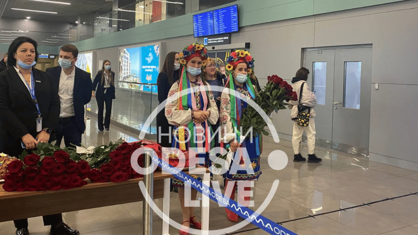 В Одессе в лучших традициях СССР устроили праздник в здании аэропорта. С тортами, оркестром и караваями встречали новооткрытый рейс из Катара.