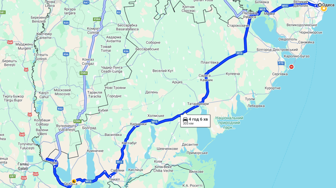 На южных отрезках трассы М-15 в пределах Сараты, Зари, Татарбунаров, Кирничок и Сафьян зафиксировано скопление транспорта. Однако эти пробки пока не критичны и не оказывают значительного влияния на скорость движения. Перед паромным пунктом пропуска в Орловке очередей нет. То же самое касается КПП "Рени".