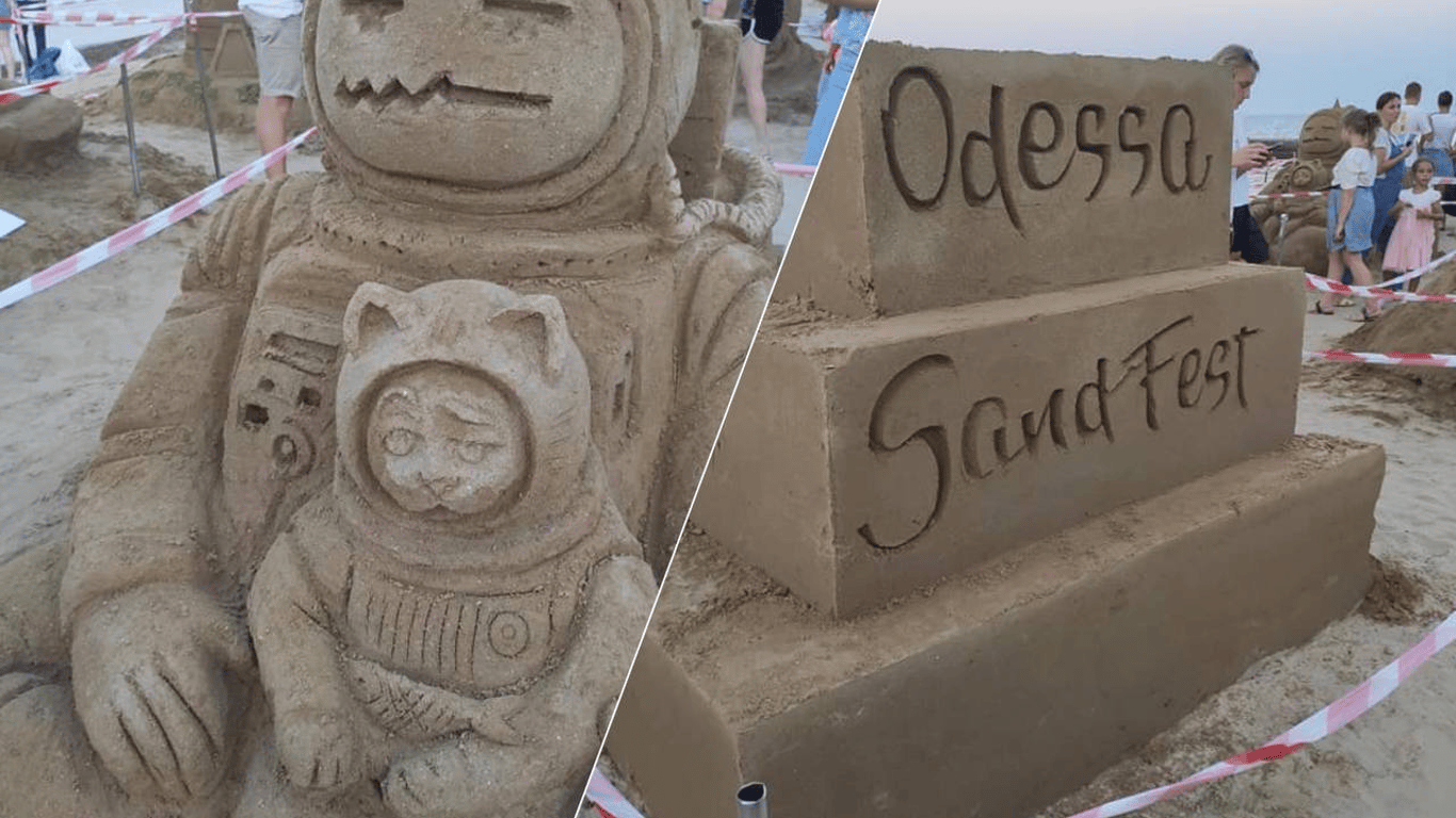 Украинский космонавт, мультики и котики: какие песчаные скульптуры построили на пляже в Одессе. Фото