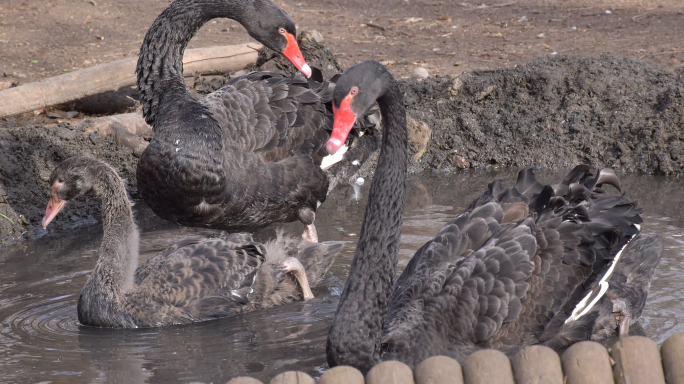 В Одесском зоопарке у пары черных лебедей вылупился птенец.