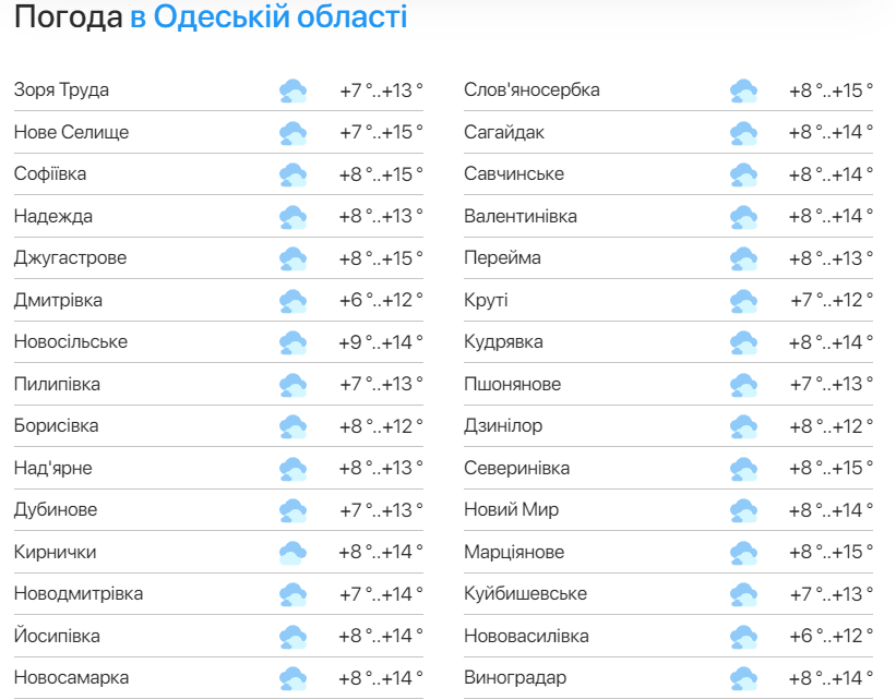 Прогноз погоды в Одесской области