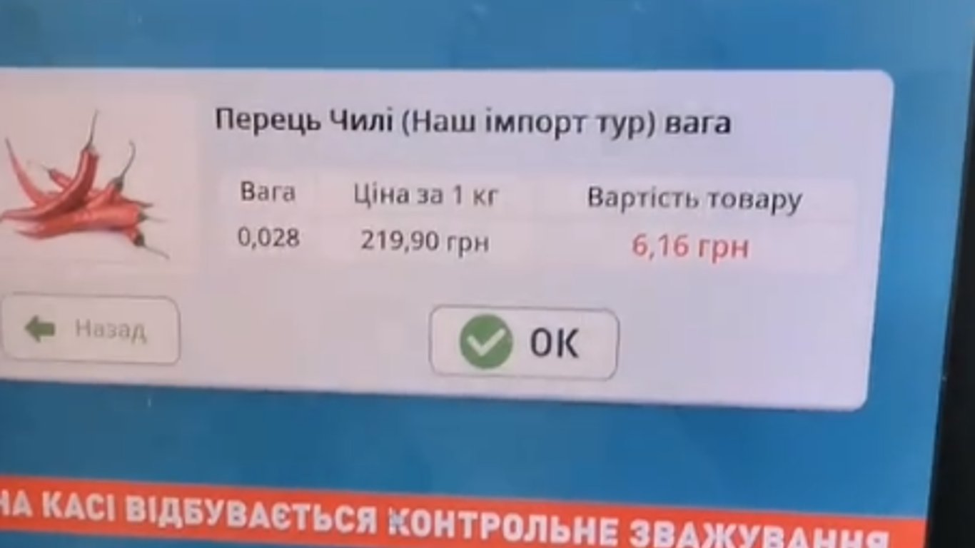 На видео, которое распространяется по соцсетям, можно увидеть, как люди взвешивают на весах маленький красный перец Чили. На экране указывается цена 2,64 грн.