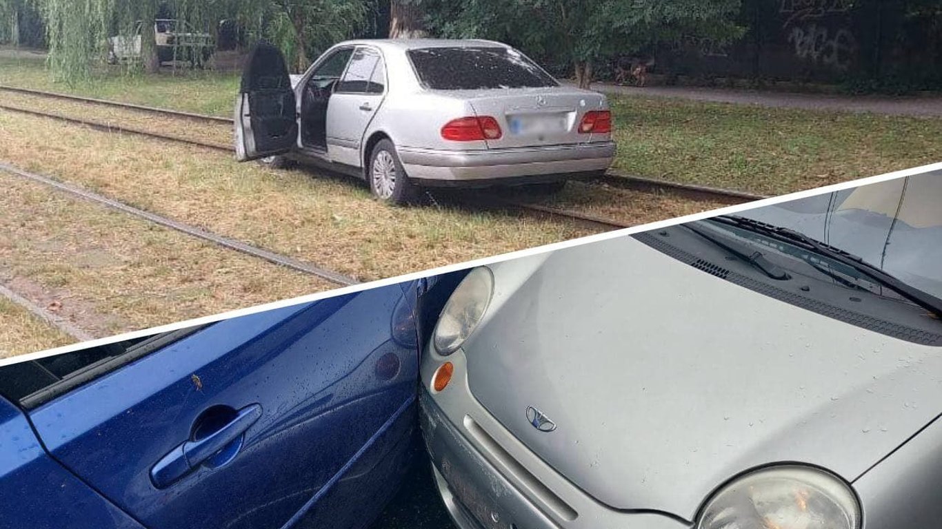 В Одессе Mercedes после столкновения с Daewoo отбросило на трамвайные пути. Видео