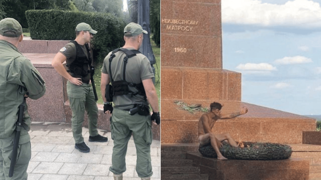 В Одессе обнаженный мужчина сидел возле "вечного огня" и ругался на прохожих. Фото