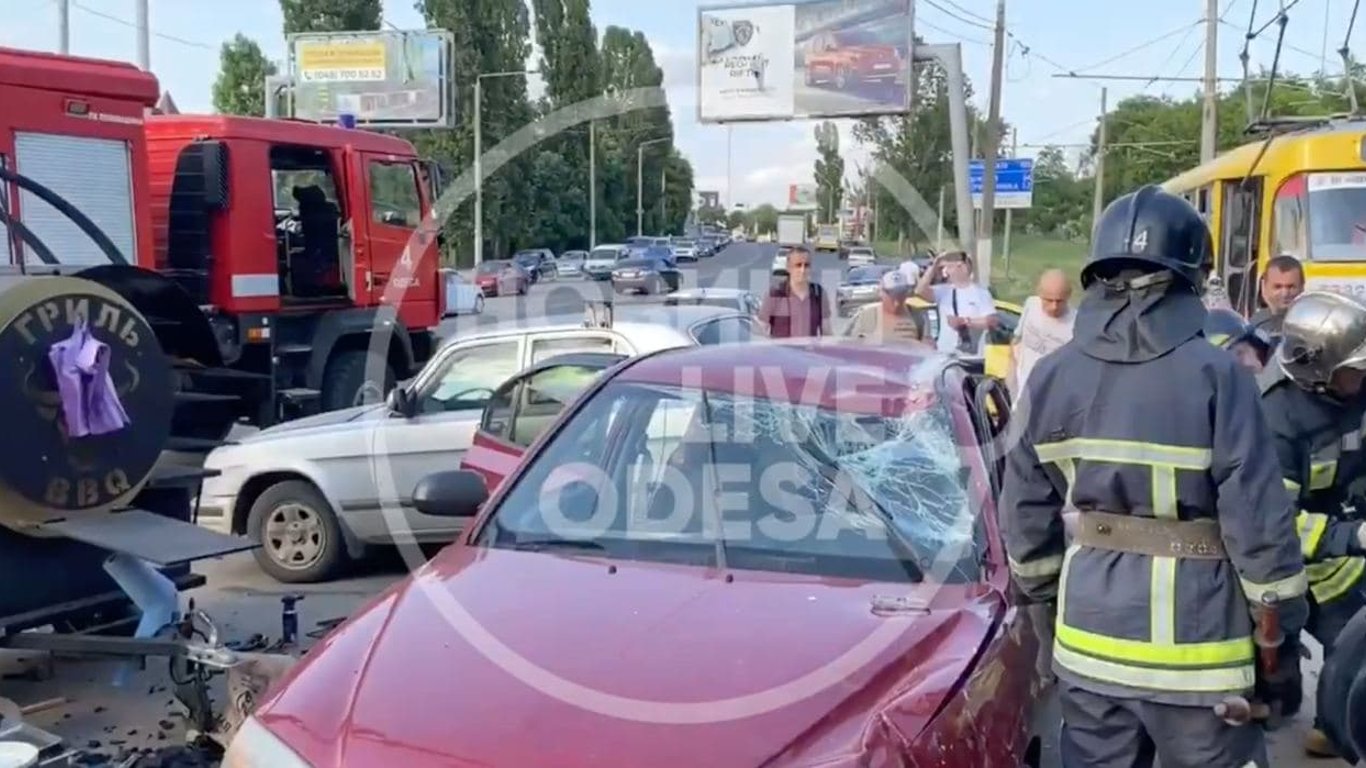 В Одессе произошло ДТП на трамвайных путях с участием трех автомобилей: пострадали пешеходы. Видео