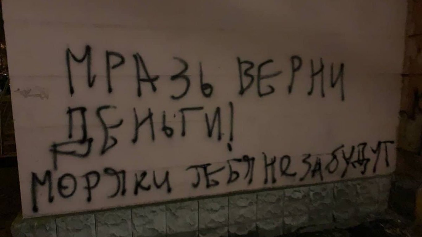 В Одессе псевдоборцам за права моряков расписали подъезд угрозами. Фото