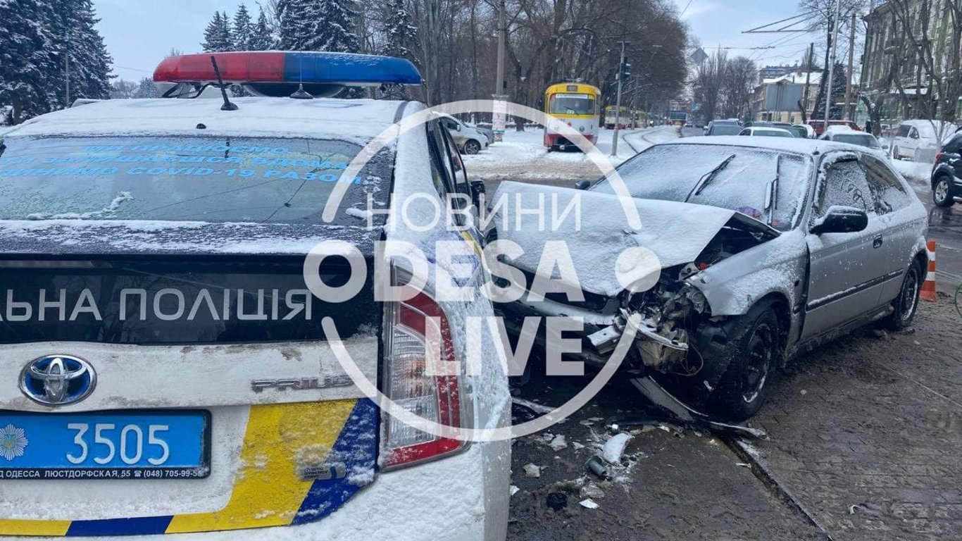 В Одессе столкнулись автомобиль полиции и легковушка. Видео